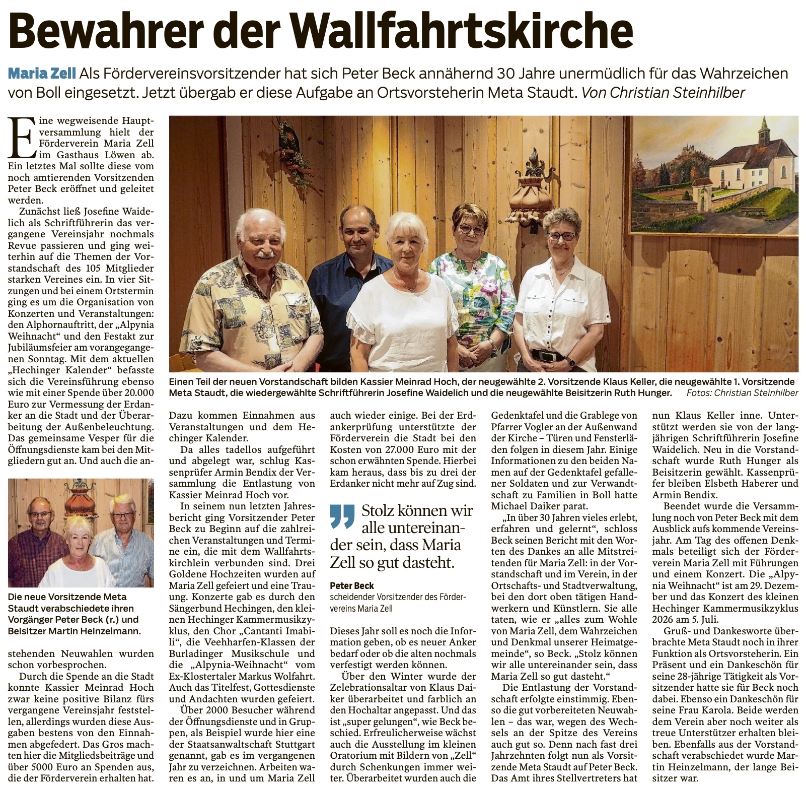 Nachfolgend finden Sie die Presseberichte zur JHV vom 04.07.2025 von Christian Steinhilber (HZ) und Michael Daiker (Schwabo):